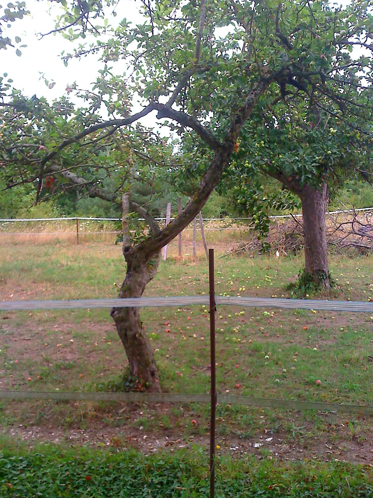 L’arbre en premier plan est planté sur une veine d’eau souterraine, on peut constater une différence avec le deuxième arbre.